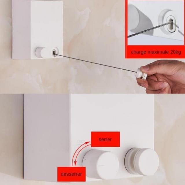 Aussi bien pour les grandes surfaces que les studios, cette corde à linge vous Facilitera le Rangement et vous permettra un Gain de Place Important.