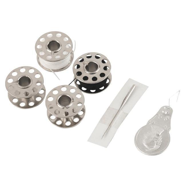 - Inclus : axe, enfile-aiguille, aiguille de rechange et trois bobines de fil