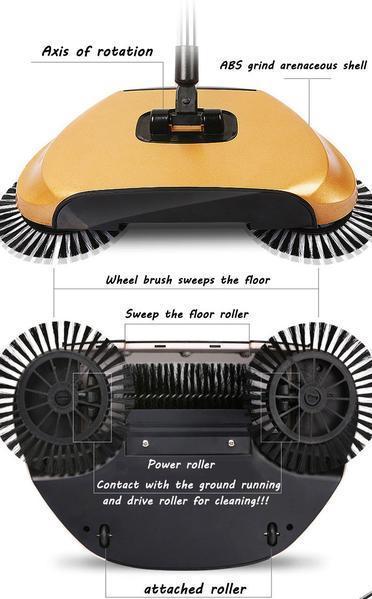 Il s’agit d’une balayeuse rotative qui fait le travail d'un aspirateur sous la forme d'un balai / poubelle, SANS électricité ni batteries ! Oui, vous n'avez plus besoin d’une mauvaise puissance d'aspiration. Sécuritaire pour l'utiliser sur carrelage, marbre, linoléum, feuillus sans éraflure ni grattage!