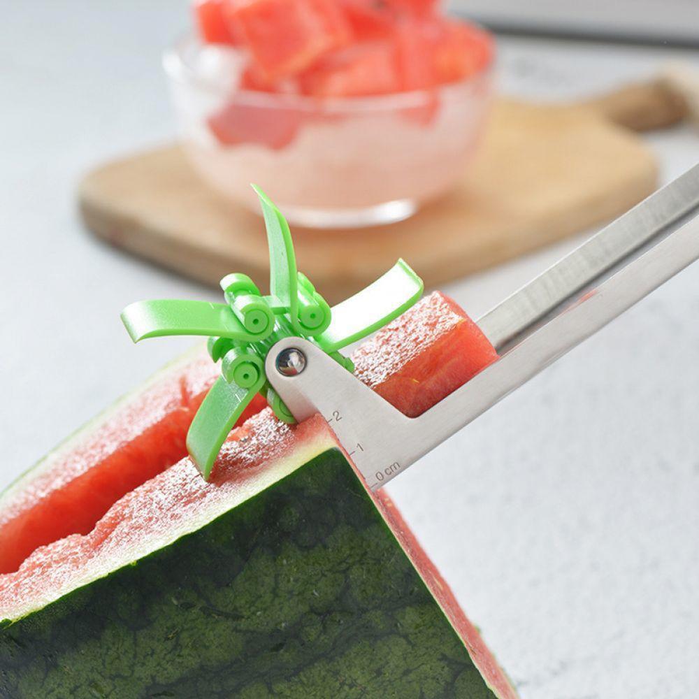 - Une prise facile qui permet de couper rapidement et de servir des cubes de pastèque directement sur l'assiette.